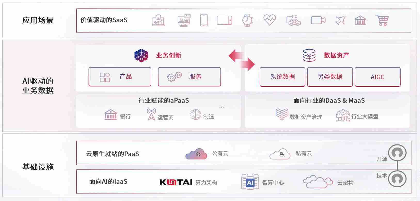 数字时代,,,,围绕企业数字化转型的关键要素,,234钱包数码开创性的提出数云融合战略和技术体系框架,,着力在云原生、、、、数字原生、、、、AI原生和信创产业上架构产品和服务能力,,,为处在不同数字化转型阶段的快消零售、、、汽车、、、、金融、、、、医疗、、、、政企、、教育、、运营商等行业客户提供泛在的敏捷IT能力和融合的数据驱动能力,,,,构建跨界融合创新的数字业务场景和新业务模式,,,,助力企业级客户建立面向未来的核心能力和竞争优势,,,全面推动社会的数字化、、智能化转型升级。。